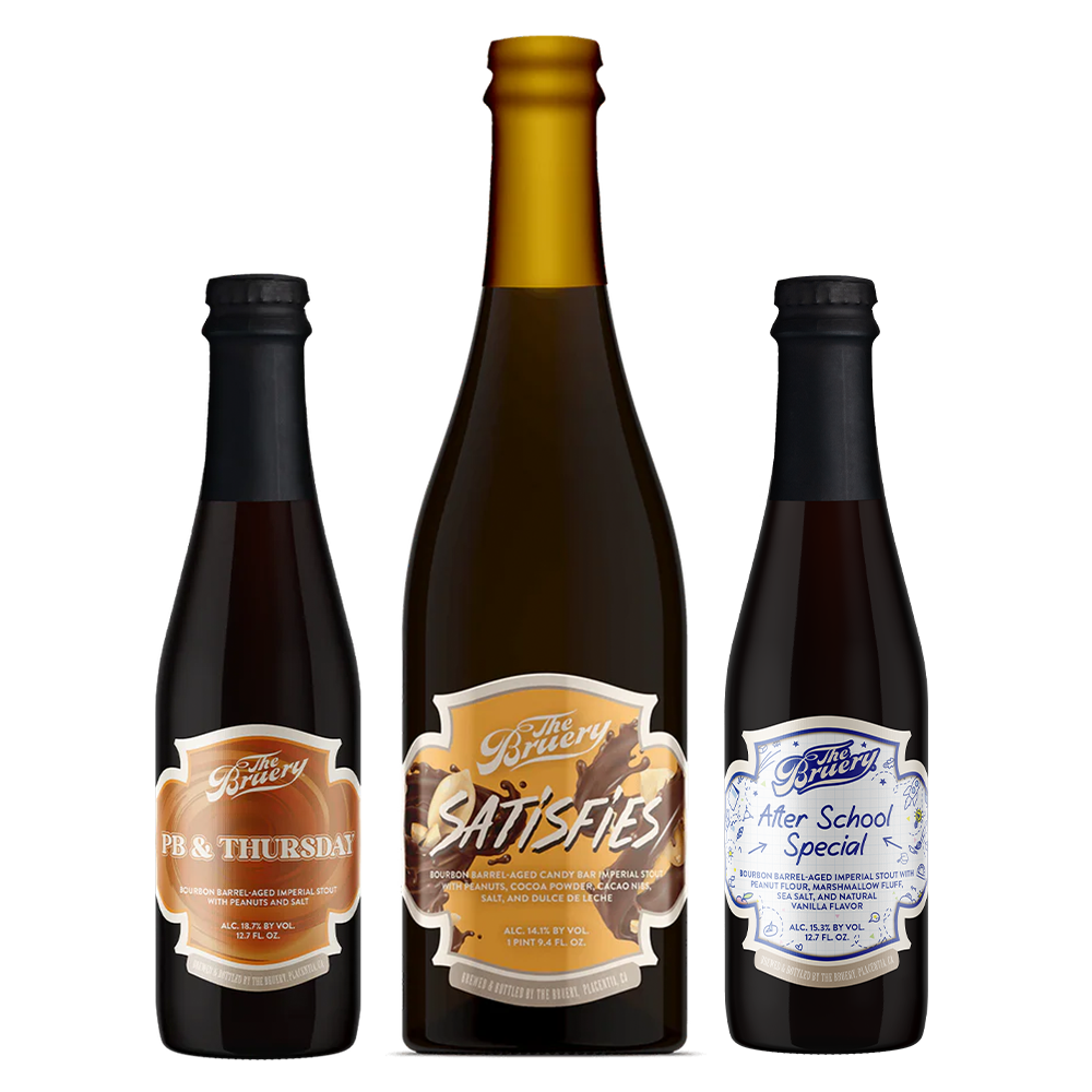 Childhood cravings, reimagined with bourbon barrel depth. This trio transforms classic after-school indulgences into decadent imperial stouts. After School Special blends peanut flour, marshmallow fluff, and vanilla over barrels from Buffalo Trace and Henry McKenna for a salted peanut and melted marshmallow dream; PB & Thursday delivers slick waves of peanut butter, dark chocolate, oak, and a touch of salt; and Satisfies completes the lineup with candy bar decadence—cocoa, cacao nibs, dulce de leche, peanuts, and caramel wrapped in warm bourbon character. Sweet. Salty. Silky and indulgent.