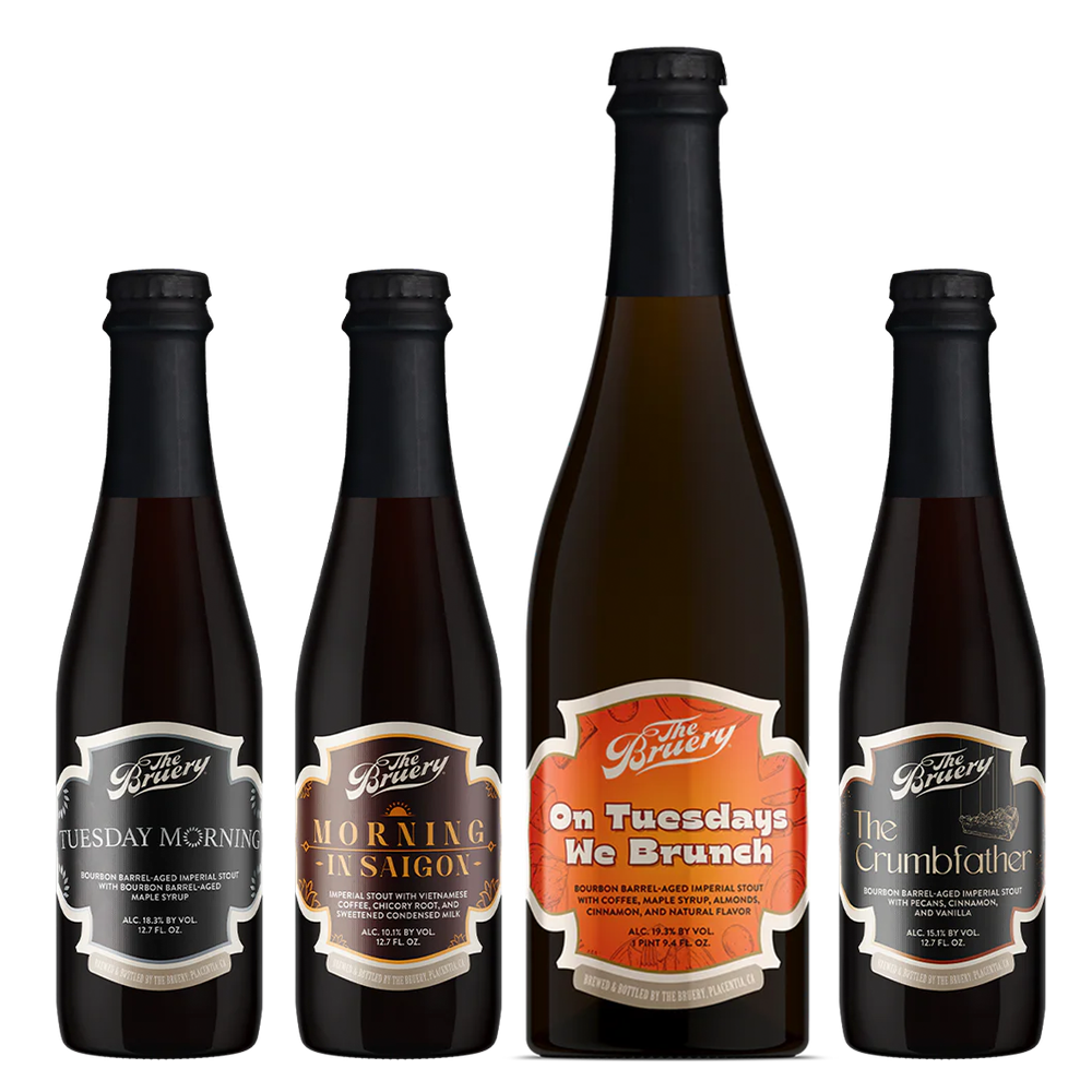 Breakfast, Bruery-style. The Beer for Breakfast Set brings together four decadent stouts inspired by morning favorites, each brewed to capture the rich, comforting flavors of the first meal of the day. On Tuesdays We Brunch blends bourbon barrel-aged imperial stout with coffee, maple syrup, almonds, and cinnamon for a bear claw–inspired treat. The Crumbfather layers roasted pecans, cinnamon, and vanilla over a bold bourbon barrel-aged base reminiscent of classic coffee cake. Tuesday Morning elevates Black Tuesday with bourbon barrel-aged maple syrup for a decadent pour full of dark chocolate and maple richness. Rounding out the set, Morning in Saigon channels Vietnamese coffee with chicory root and sweetened condensed milk for a creamy, velvety finish.