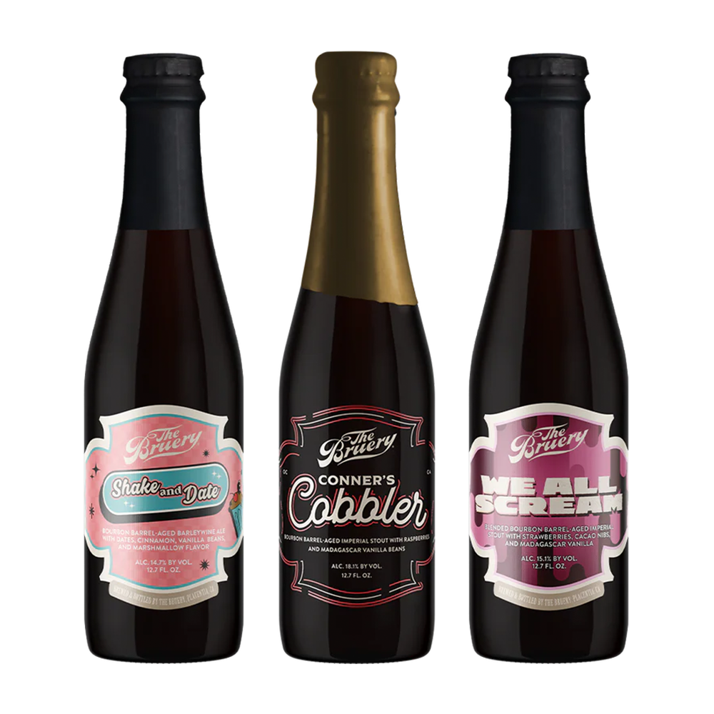 Rich, indulgent, and unapologetically decadent, the Dessert Time Set brings together three barrel-aged creations inspired by your favorite sweet treats. Shake and Date layers bourbon barrel-aged barleywine with dates, cinnamon, vanilla, and marshmallow for a lush, caramelized sweetness with a warming spice finish. We All Scream blends bourbon, rye, and port barrel-aged stout with strawberries, cacao nibs, and Madagascar vanilla, evoking a nostalgic, chocolate-covered berry sundae. Rounding out the set, Conner’s Cobbler is a bourbon barrel-aged imperial stout bursting with raspberries and vanilla, capturing the comforting essence of a freshly baked cobbler.