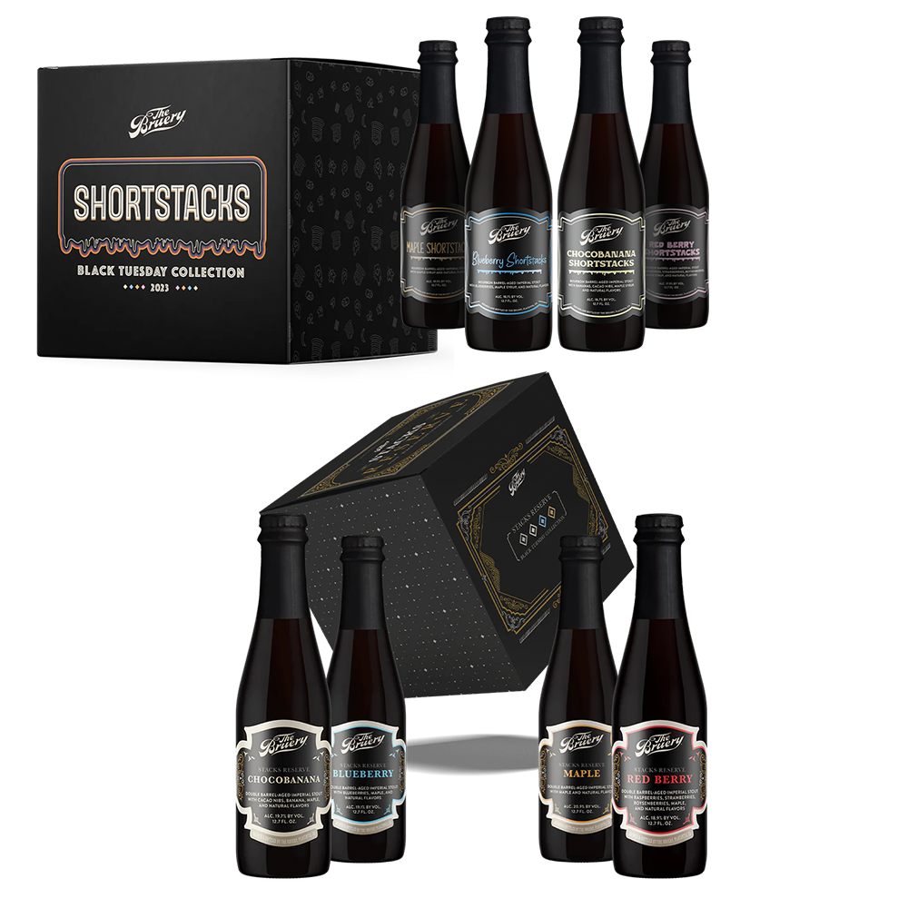 The Shortstacks Collection brings four playful, flavor-packed takes on Black Tuesday — Blueberry, Red Berry, Maple, and Chocobanana — each crafted to evoke your favorite pancake toppings through rich fruit character, deep maltiness, and a touch of maple sweetness.